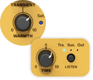 Transient Shaper lets you get really granular with your sound shaping. There’s a Warmth knob to add saturation to your transient, a Time knob so you can adjust the length of the transient being processed, and a Listen button that isolates the transient or tail of your sound so you can hear your changes independently and blend samples seamlessly.