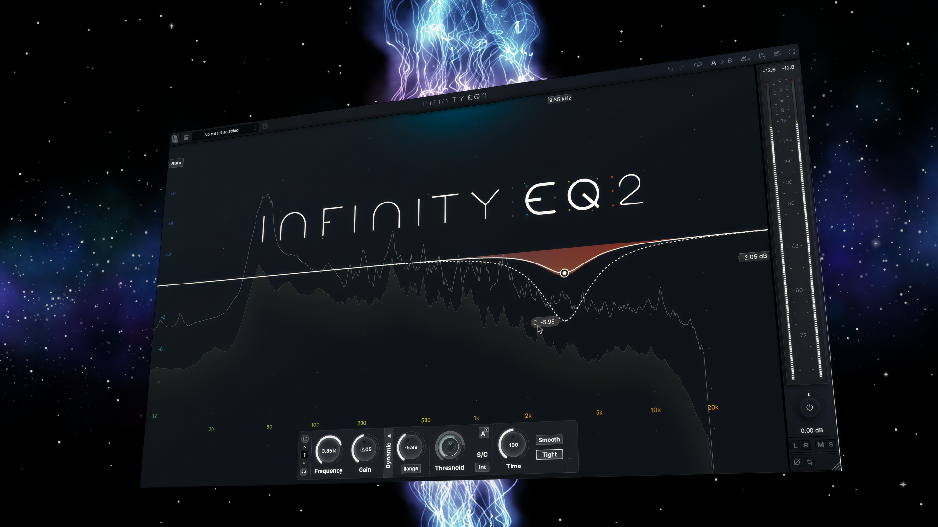 Infinity EQ 2 also features two new timing modes: Tight and Smooth. Tight is very reactive and great for tasks like de-essing, while Smooth offers a slower release that lets more transients through.
