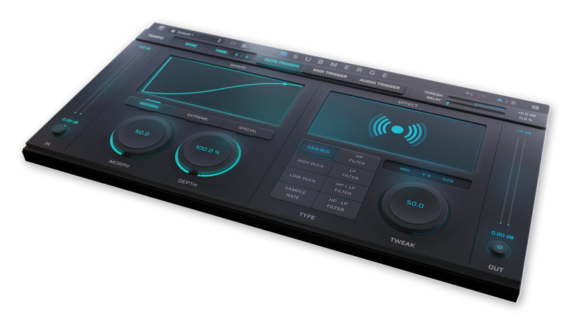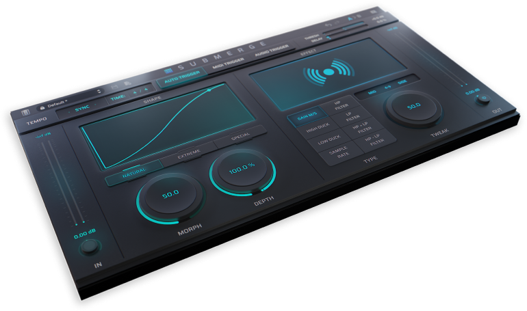 Submerge can be triggered via auto sync, MIDI, or audio triggers. The plugin also features three control curve modes, allowing for a range of subtle to extreme results.