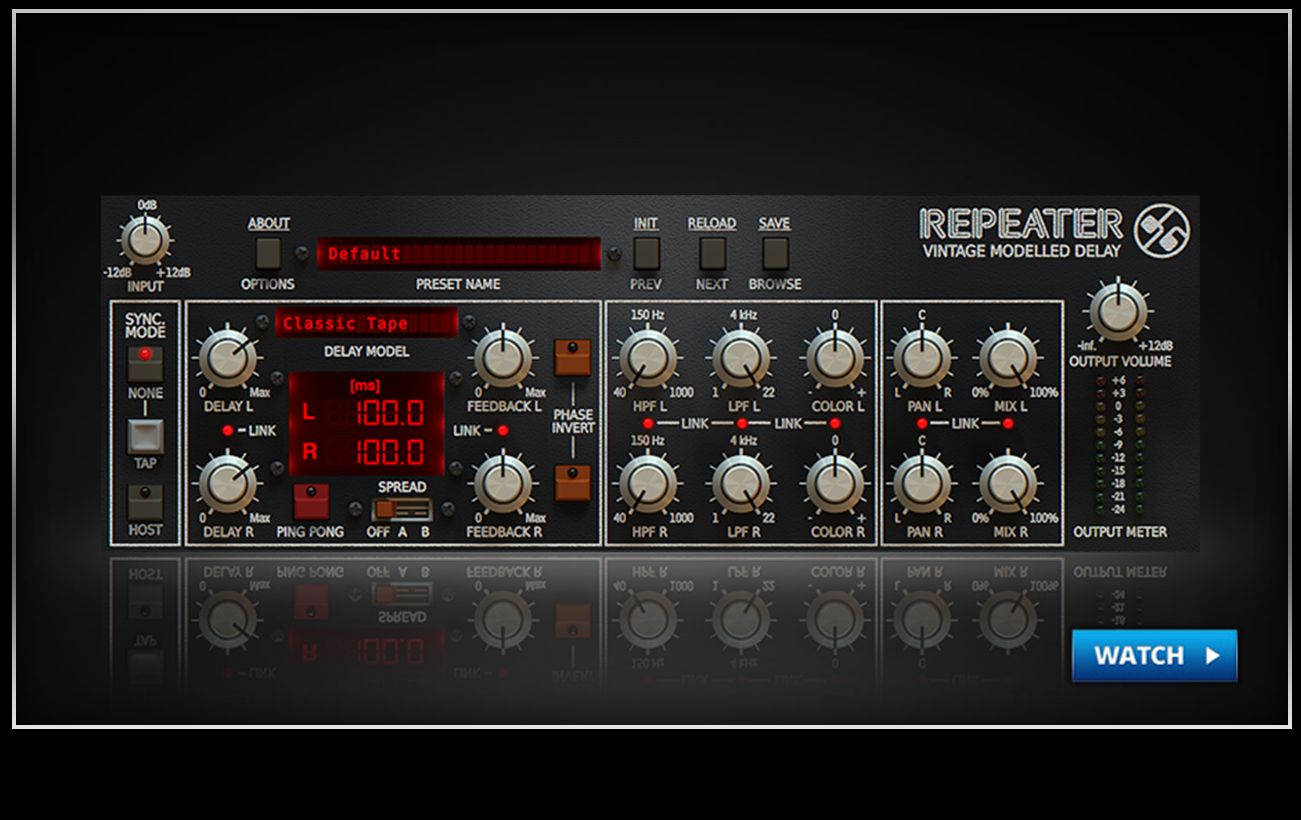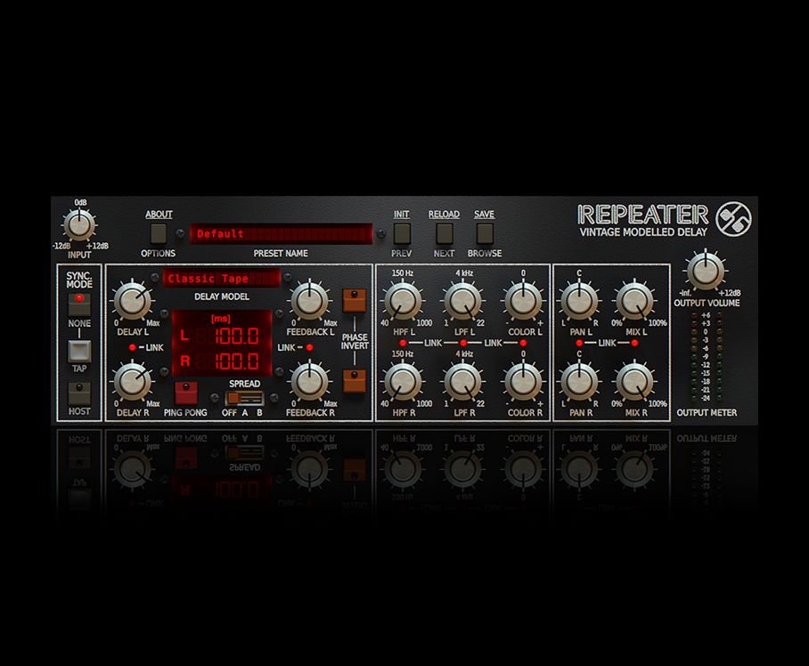 Repeater Delay features 23 authentic emulations of classic delay machines ranging from classic oil cans and tape machines to vintage digital designs – it’s packed with sounds and new features that will add depth to your mixes, and it comes with a user interface that’s immediately easy to understand and tweak.