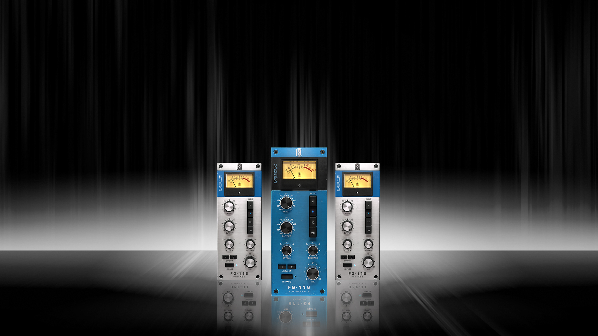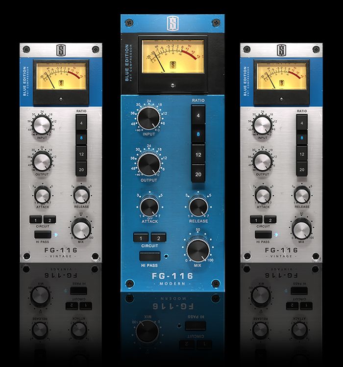 The FG-116 Blue Series authentically recreates the tone of two vintage “rev A” FET limiting amplifiers, and then offers two uniquely modernized versions of the classic FET circuit. With vintage and modern tones and clever features like hi pass detection and a parallel mix knob, the Blue series can be used all across your mixes.